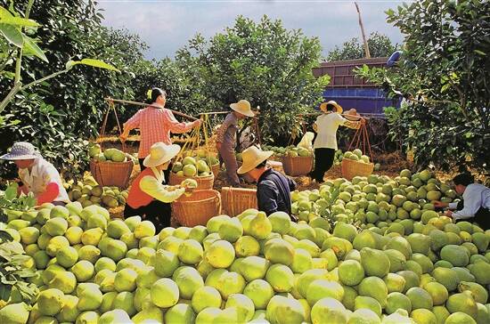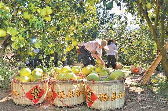 又是一年柚飘香。每年9月,梅州漫山遍野的柚子树都挂满了沉甸甸的金黄果实。据考,明代以前梅州便种有柚子,从土柚,到暹罗柚,再到红肉柚,品种繁多。自20世纪初,梅州梅县引进沙田柚,世界客都更是与柚子结下了不解之缘。历经百年岁月,“青出于蓝反胜蓝”的梅州沙田柚经农业部门改良后,命名为“金柚”。如今梅州已成为全省最大、全国第二大的柚类生产基地,并以“中国金柚之乡”“中国蜜柚之乡”的美名享誉海内外,梅县金柚、大埔蜜柚获评地理标志产品。