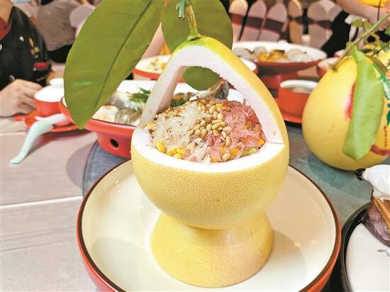 清爽不腻的金柚月饼、香气浓郁的柚花茶、几经熬煮的柚皮蜜饯、风味独特的金柚啤酒……在梅州,除柚果上市时节能吃到鲜果外,如今一年四季都可品尝柚子滋味。近年来,梅州的柚子产业飞速发展,精深加工产品日益增多。除丰富柚子美食种类,柚子被用来提取柚苷,做成洗护用品,甚至彩妆产品,全果利用率大大提升,“全身都是宝”的梅州柚子正向大家展示它皮、瓤、果各个层次的独特魅力。