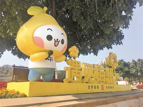 作为梅州的特产,柚子近年来也被赋予了新的“形象”与内涵。金柚路灯、金柚花圃、梅州柚主题邮局、柚子洲头……走在梅州街头,你时常会看见一些带有柚子元素的建筑或作品,更加醒目的还有“活跃”在梅州西高铁站、梅县区人民广场、松口梅县金柚产业园区等地的一只穿着传统客家服饰的可爱“柚子”,它就是梅县文旅吉祥物——细柚。