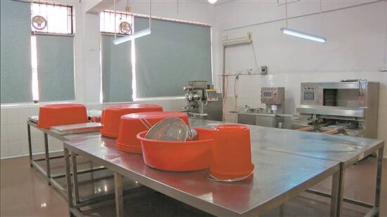 横沥副食厂月饼生产车间已清洁干净,设施设备正进行紫外线消毒