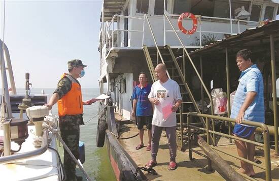 深圳海警局工作人员提醒船员注意台风影响 郭起 王林崴 摄