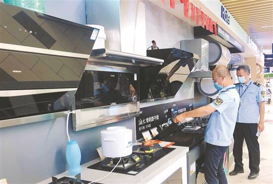 市场监管人员检查在售的燃气具