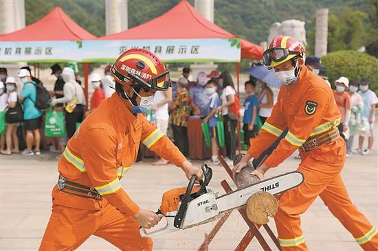 另外,通过现场装备解说、宣传展板介绍、发放宣传资料等形式,对广大市民开展森林防火宣传教育,森林防火吉祥物“虎威威”全程游走,向市民发放森林防灭火宣传手册,与市民互动。同时,现场还设立消防拼拼乐、超级变身、水带击瓶等游戏环节及现场趣味问答环节,让市民沉浸式体验森林消防工作,调动了市民参与森林消防工作的积极性。