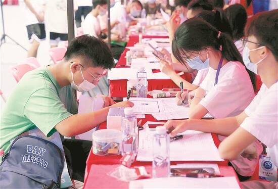 新生正在完成入学报到