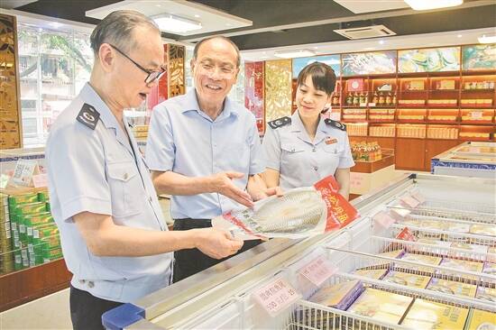中山水出集团董事长何荣洪向税务人员介绍公司生产的预制菜