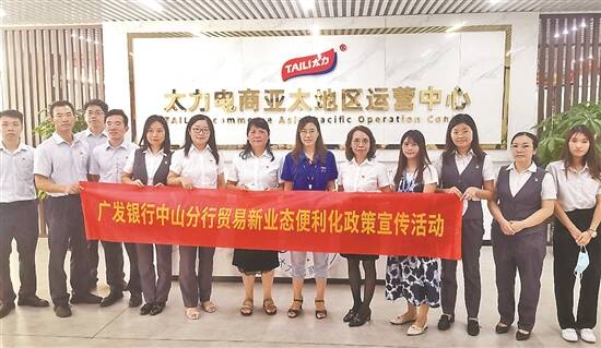 为深化银企互动,推进党建工作与业务发展深度融合,坚持以稳外贸为导向,支持跨境电商贸易新业态发展,9月19日,广发银行中山分行交易银行部党支部与广发银行中山市石岐支行党支部一同前往广东太力科技集团股份有限公司,开展“支持贸易新业态、砥砺初心担使命”主题活动。