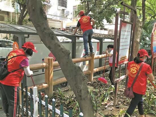 志愿楼长开展社区环境整治工作