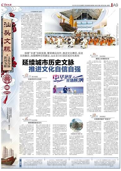 如今的汕头,正聚焦使命任务,在高度关切人民群众的新期待和精神文化生活新需求中,持续不断优化文化服务供给,探索“非遗”创新发展,繁荣精品创作,推进文化惠民,促进文旅融合,加强精神文明建设,加快培养具有文化自信的文化人才队伍,推动优秀传统文化创造性转化、创新性发展,让城市文化综合实力不断出新出彩。