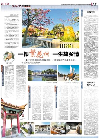 3岁时,秦牧随父亲侨居新加坡。1932年,又随父辗转回到了故乡——广东澄海的樟林。据悉,回乡后,秦牧在萃英小学念高小。他绘画、数学的成绩不好,但对文史课程很感兴趣,作文卷常常得到老校长的青睐,总是被画上许多圈圈点点,获得“贴堂”的优遇。