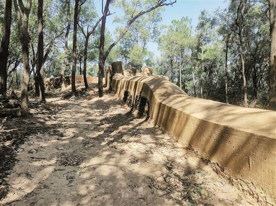 今年4月,虎门炮台旧址第二期第二阶段修缮工程开始实施,分别对广东水师提督署寨墙、定洋台、蛇头湾炮台、临高台等四处文物遗址进行修缮。截至目前,工程总量已完成95%以上,其中,蛇头湾炮台已完成98%,临高台已完成99%。曾经历战火硝烟后沉寂很久的炮池、弹位、兵营、练兵场、围墙等,重新展现出原貌,向后人无声地诉说当年的历史。日前,记者随鸦片战争博物馆保管部工作人员一起走进修缮现场,感受曾经的峥嵘岁月。