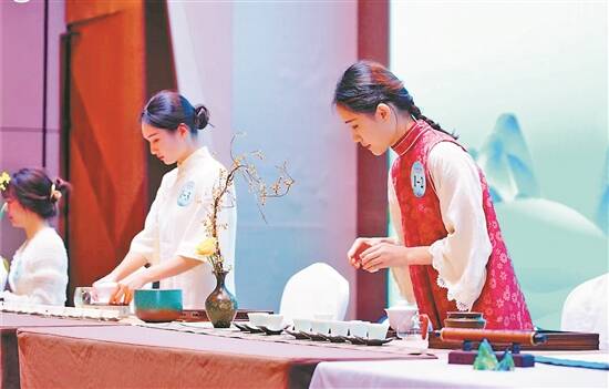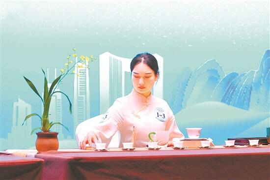 记者在茶艺师比赛现场看到,进入决赛的60名选手通过抽签排序的形式分为12个小组,每组按抽签排序安排5人上台。比赛内容为茶叶沏泡技能比赛,选手需独立完成大会指定的两种茶叶的沏泡流程,以展示选手所冲泡茶叶的色、香、味、形最佳品质为载体,借助标准、娴熟的沏茶手法表现茶叶的冲泡过程,展现选手自身所具有的茶艺师职业技能水平的高低,强调参赛者技能的发挥。
