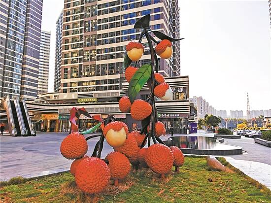 在长富社区城管片长黄家宁的陪同下,笔者沿路看到,朗豪街呈现着非常舒适的城市美感,分为都市艺术街区段、浪漫时尚街区段、社交生活休闲段,每个街区都吸引了不少市民前去购物娱乐。主干道、转角带矗立着荔枝、木偶、篮球、醒狮、毛织等多个独具大朗特色的雕塑,整条街道充满活力。