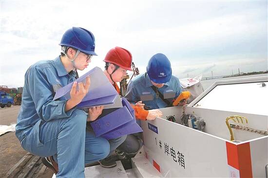 中山火炬供电分局技术人员上门为中山港货运码头岸电提供优质服务 孙嘉彪 摄