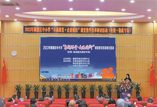 羊城晚报讯 记者杨苑莹摄影报道:11月8日,佛山市顺德区伦教街道、勒流街道教育办公室联合开展顺德区“卓越课堂·走进镇街”课堂教学改革研讨活动,在伦教汇贤实验学校举行开幕仪式。来自伦教汇贤实验学校和勒流中心小学代表分别做了经验分享,全区各中小学校教学线行政、学科组长及学科教师代表在线上参加活动,共同探讨如何更好促进质量提升。