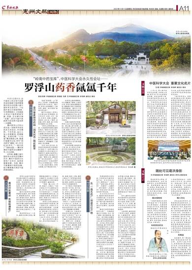 惠州罗浮山之所以成为这一顶级学术会议的永久性会址,并非偶然。千百年来,这片土地上百草繁茂,药香氤氲。东晋时期,“小仙翁”葛洪隐居山林,修道行医著书立说;宋代“洞天药市”盛极一时;20世纪80年代,“一县五药厂”冠称全国……惠州深厚的中医药文化横跨千年,久久回响。