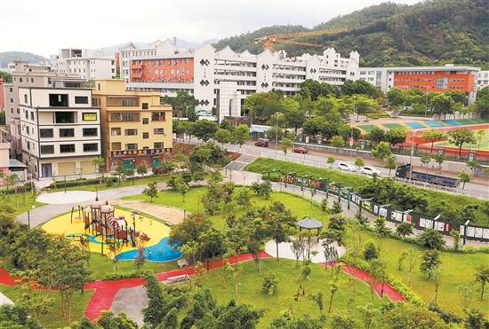 “这里以前是种植荔枝的果园,为了提升公共服务能力和增强居民幸福感,我们从前年开始,将此地改建成荔枝公园,不但保留了原来的荔枝树,绿化率超过七成,而且还配套建成了儿童乐园和增设了成人健身设施,这里成为了大家茶余饭后休闲娱乐的好去处。”官仓社区党总支委员蔡嘉茂告诉记者,社区将客家文化与风貌带建设有机结合,完善了居住区的配套设施,推进了社区环境升级,盘活土地建设了六家公园、锦鲤池、缤纷百花园、绿色健身步道等,让居民们实现了“推窗见绿、开门赏花、一步入园”的愿景。