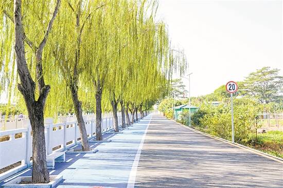 蓝天绿水、树木成荫、风光旖旎……每天清晨和傍晚,潢涌村江滨公园热闹非凡。黎展朋介绍道,按照美丽圩镇建设部署,潢涌还持续投入资金开展闲置地景观提升,依托江滨公园打造的“十里榕廊”以及展现潢涌历史文化的浮雕墙就是其中的典型代表。此外,潢涌结合原有环境,打通了辖区内的池塘水系,重新规划游览路线,设置观景亭、景观桥、亲水平台等设施,种植观赏植物,营造了一个集可观赏、可游玩、可休憩于一体的生态湿地公园。