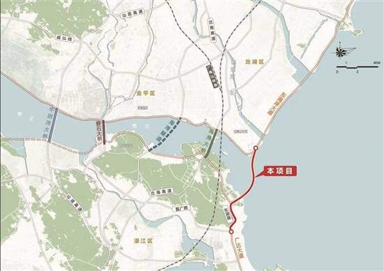 根据公告,跨汕头湾新通道项目(暂定名)位于汕头海湾大桥以东4公里,起点在东海岸新城新津片区,路线自北向南跨越汕头湾,终点至濠江东湖片区(汕头综保区接广达大道)。路线总长约8.2公里,其中跨海段约4公里。
