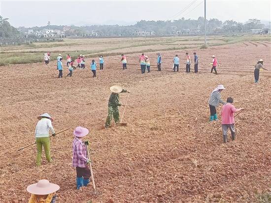金溪村村民在深圳电信“党建助耕”撂荒地上播种冬小麦