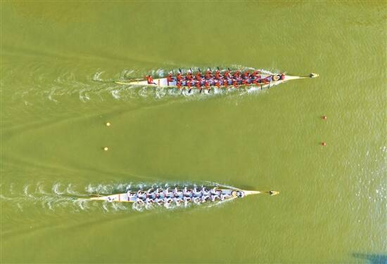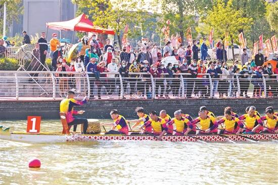 “预备!哔——”裁判发号施令,划手们奋力挥动船桨,龙舟似箭破开河道,浪花四溅,鼓声雷动。200米赛道较短,看点在于速度与节奏,稍稍乱拍便会被对手甩在身后,而500米的比赛考验的是选手的体力和团队协作,如果不能以耐力坚持到终点,便会与胜利失之交臂。
