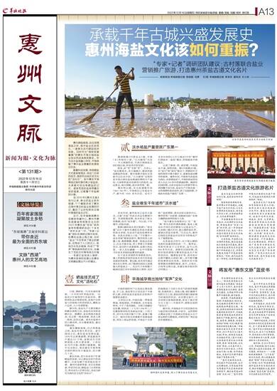 自2019年《惠州文脉》创刊以来,推出的盐业系列报道,11个整版讲述了惠东沿海村落旧时盐业发展的印记,重启了尘封在那些沿海村落里的盐业记忆。