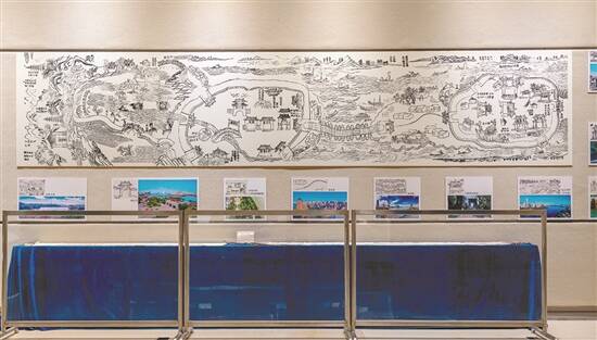 在展览现场,东坡寓惠行迹图的古今对比引起了人们的关注。明崇祯四年(1631年)所绘制的《惠景全图》,收录于归善举人黎遵指所编纂的《苏文忠先生寓惠全集》中,这幅《惠景全图》亦是东坡寓惠行迹图,展示了明代惠州府一街挑两城的城市格局,呈现出惠州府、县两城一湖两江的地理特征。惠州白鹤峰东坡祠、东江及西枝江、东新浮桥、惠州府城、西湖等有关苏迹,以苏轼足迹为脉络,将惠州两城一湖的地理特征展现无遗。