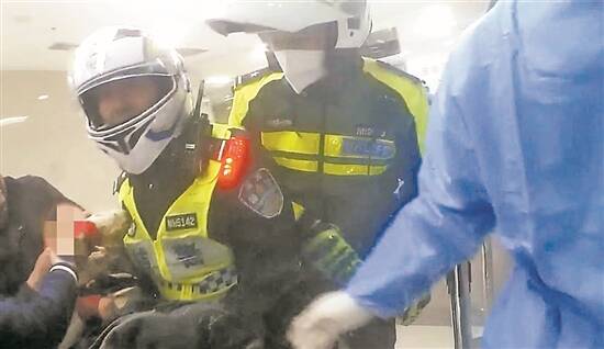 南海公安分局交警大队狮山中队民警抱着小孩冲进急诊室
