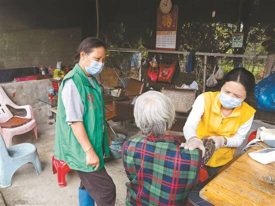 来到李屋村李婆婆的家,“女儿”姚带芳已经在和李婆婆闲聊了,“护工上门帮我打扫卫生,还陪我聊家常,关心我的身体健康,我真的很感谢他们。”李婆婆说,通过交谈记者了解到,李婆婆是李屋村人,今年已六十多岁,独居长者要么无儿无女,要么子女不在身边,有些身体欠佳的老人也不常出门,有时候身边连说话的人都没有,甚至对陌生人的接近会有明显的抵触。与李婆婆结对的“女儿”姚大姐表示,此前李婆婆甚至受到一些“骚扰”,如半夜敲李婆婆的门,在门前丢垃圾,甚至大小便等等,李婆婆一直不敢说,怕麻烦别人,在经过多次的探访后,李婆婆终于向他们求助,最后解决此事。此举赢得了老人的信任,自此之后李婆婆也是敞开心扉,把姚大姐当作真正的亲人。