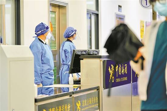 老郑笑看着背着书包的小小身影消失在入境通道,转身继续在岗位上工作……