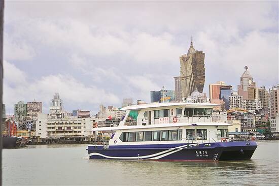 搭载乘客的轮渡自湾仔口岸出发前往澳门