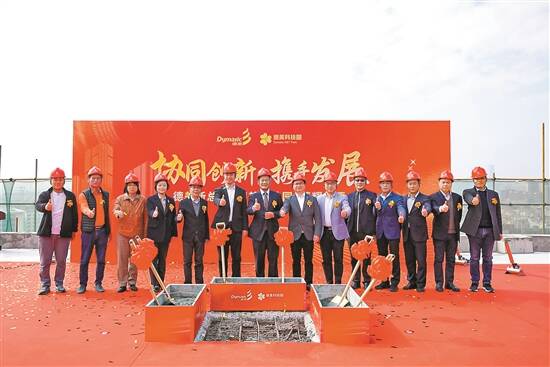当日,园区内德美化工新总部大楼同步封顶。德美化工是精细化工行业龙头之一,也是容桂上市企业排头兵之一,扎根容桂30多年,从精细化工行业起步,现已发展成为一家业务覆盖精细化学品、石油化学品、天然化合物、产业投资以及产业园运营等多个领域的高新技术企业,拥有国家级企业技术中心。