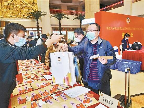 政协委员在报到处领取会议资料 卢锦权 摄