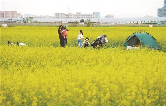 金黄色的花海吸引市民打卡