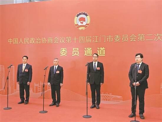 江门市政协委员在“委员通道”接受采访