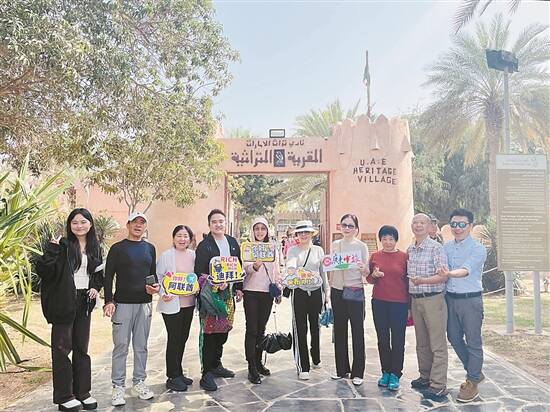 广东中旅游客在阿布扎比民俗村合影