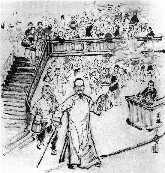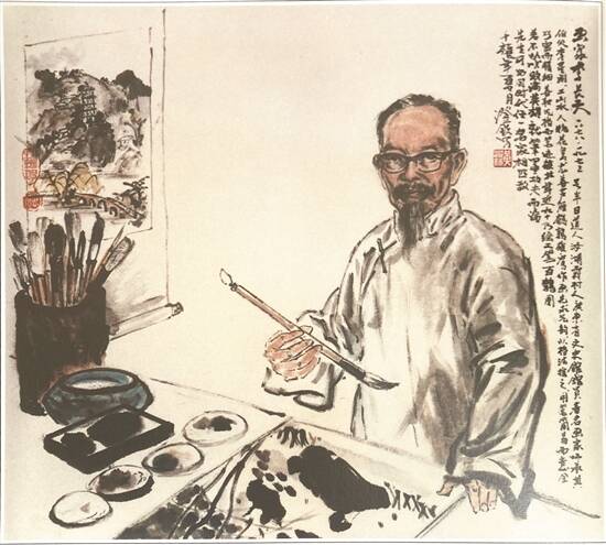 惠州画家黄澄钦所作的“李长天饮茶”图