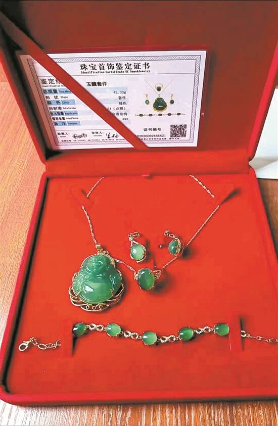 佛山消委会了解到玉石与玉髓存在较大差别,玉髓颜色较均匀单一,通透性较差;而玉石颜色多变,内部比较通透,因此价格也较高。该套件并非玉石,其镶金经专业机构检测也并非14k金,杨爷爷所购商品严重质价不符。