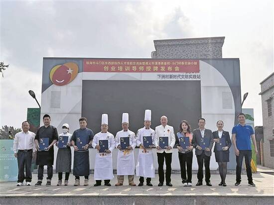 3月8日,珠海市斗门区东西部协作人才技能交流会暨贵州遵义市湄潭县金桥·斗门印象农旅小镇创业培训导师授牌发布会在斗门镇下洲村举行,包括市餐饮协会会长常胜在内的10名获颁创业培训导师称号的技能人才,将带着特有的珠海经验和“斗门模式”,在湄潭新“复制”一个金桥·斗门印象农旅小镇,助力珠海遵义东西部协作高质量发展。