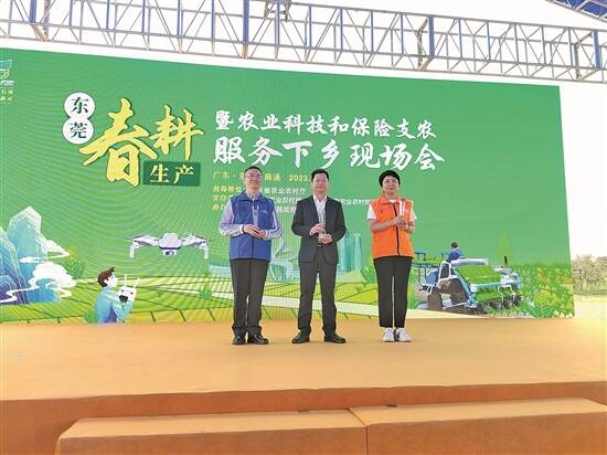 惊蛰过后春耕起,农时一刻值千金。为贯彻落实中央一号文件、全省春耕生产暨支农服务下乡现场会精神,表彰先进,动员部署2023年东莞市春季农业生产工作,切实保障粮食和重要农产品稳产保供,3月9日,东莞市在麻涌镇华阳湖美丽田园召开2023年春耕生产暨农业科技和保险支农服务下乡现场会,掀起全市春耕生产热潮。东莞市委常委、政法委书记梁杰钊,省农业农村厅二级调研员张育灿等出席活动并讲话,市镇村相关负责人、全市种粮大户代表,以及有关保险公司、行业协会代表等共200多人参会。