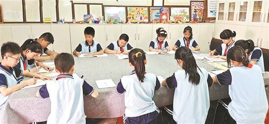 “泉眼无声惜细流,树阴照水爱晴柔。小荷才露尖尖角,早有蜻蜓立上头。”五华县第三小学的学生正在认真诵读着宋朝诗人杨万里创作的七言绝句《小池》,声音清脆动听。2022年4月,该校开展了以“传承文化 客韵乡音”为主题的客家话古诗词诵读系列活动。“我们每年都会举办古诗词诵读活动,古诗词内容不局限于本地,学生可以诵读古今中华经典的诗词。”五华县第三小学校长宋杜文表示,今年古诗词活动正在筹备,拟在下学期开展。