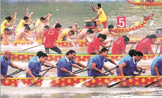 博罗县端午节龙舟竞赛,队伍奋楫争先 陈彩虹 摄