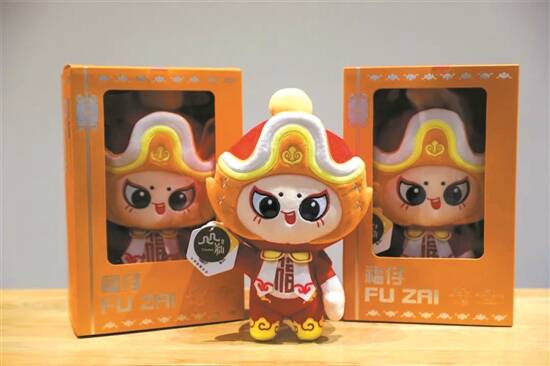 华旺实业分公司、华旺嘉娱(厦门)文化传媒有限公司总经理刘铮告诉记者,“茶山福仔”的帽檐参考了岭南镬耳屋顶线条,眼部、腮红参考了粤剧的服饰和妆容;头上正中间的图案参考了明代金锦如意云纹;两侧的图案参考了炮仗花的花纹和配色;脚底黄色的纹路代表了脚踏祥云,奔着吉祥而来;身体中间的福字寓意福气满满。