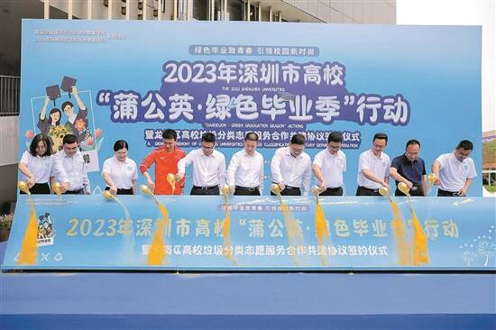 5月8日,2023年深圳市高校“蒲公英·绿色毕业季”行动暨龙岗区高校垃圾分类志愿服务合作共建协议签约仪式在香港中文大学(深圳)举行。本次活动由深圳市生活垃圾分类管理事务中心、龙岗区城市管理和综合执法局、香港中文大学(深圳)联合主办,深圳市垃圾分类志愿服务总队、龙岗区垃圾分类志愿服务大队共同承办。