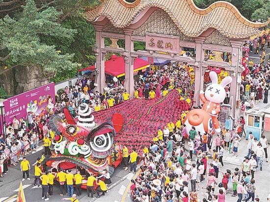 作为此次活动的重头戏,今年的“大仙诞巡游”环节共设九大主题方阵,包括“众仙贺樵”“狮王醒樵”“双龙乐樵”“功夫强樵”“德体育樵”“艺术兴樵”“至善暖樵”“民生惠樵”“产业旺樵”,是近年来方阵数量最多、参与人员规模最大的一次巡游。据介绍,本次的巡游线路也有所延长,由原来的“奎光楼—樵园路—云门牌坊”,延长至听音广场上的寻根树,全程约3公里。