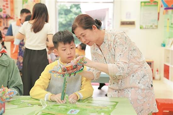 “与孩子共同创作秋色赛会作品时,传承人应秉持开放包容的态度,不仅是‘传艺’,我认为更是交流交融的过程。每项非遗都要与时代同步,像我所从事的佛山剪纸项目,从明清时代的民俗用品、祭祀品,到二十世纪七八十年代描绘当时国家建设风貌,2000年以后,更着重展现岭南风情,每个时代的传承人都通过作品展现着每个时代的风采。现在的孩子,接收资讯渠道众多、涉猎很广,我们更应该鼓励他们把新的想法融入作品里面,让创作更有趣,成品也更具个性。”陈嘉彦表示。