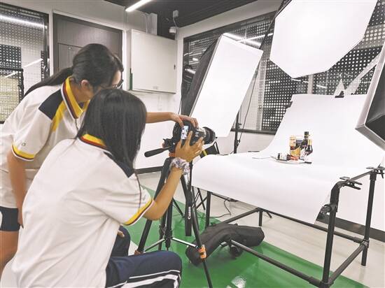 学生们在实训基地内学习产品拍摄