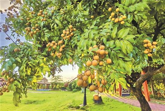 “圆若骊珠,赤若金丸,肉似玻璃,核如黑漆。补精益髓,蠲渴肤肌,美颜色,润肌肤,各种功效,不可枚举。”这是明代学者宋珏对龙眼的描写,可谓传神。走进文化园,可以看到龙眼树上已经挂满成熟的果实,串串龙眼又大又密,沉甸甸的。