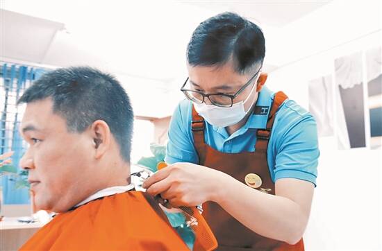 “除了是保安大叔,我还是一名理发师,每天工作之余尽力为需要的同事们施‘法’变美。”陈金海对自己的义剪工作打趣道。陈金海是广东省交通集团所属宁华公司保安员,作为一名“80后”,他凭借着一手精湛的理发技艺被宁华公司广大员工称为“金剪子”,2021年以来,他免费帮职工群众剪发达300人次。