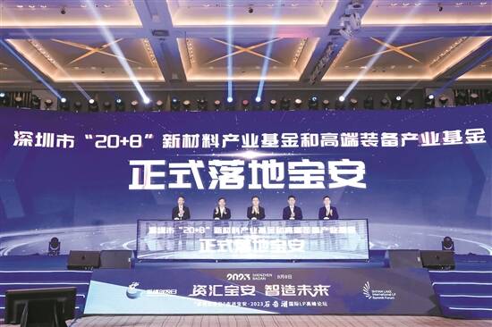 当天,深圳市“20+8”产业基金新材料和高端装备落地宝安仪式成功举行,意味着第二批“20+8”产业基金中,目标规模20亿元的高端装备产业基金以及目标规模30亿元的新材料产业基金落地宝安。其中,高端装备产业基金主要聚焦工业母机、激光与增材制造、精密仪器设备三个产业领域。新材料产业基金重点投资于电子信息材料和前沿新材料产业链上下游,及新材料相关辅助研发技术和服务。这两个产业基金,将助力宝安深度布局重点产业集群,充分放大宝安在新兴产业集群领先成效,加快建设世界一流先进制造业强区。
