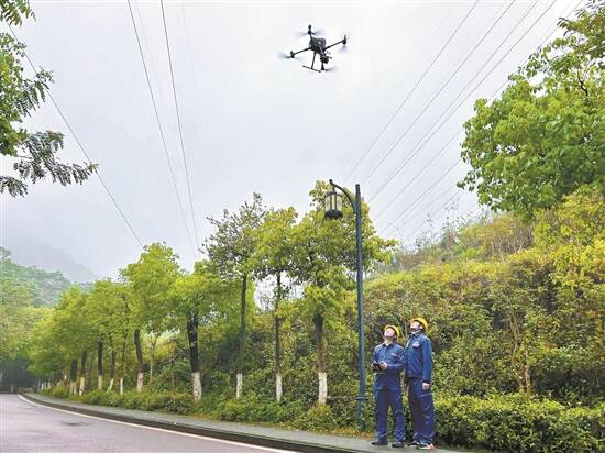 供电人员使用5G无人机对线路进行智能巡检 徐靖琳 摄